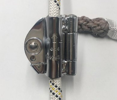 抓繩器是風(fēng)電系統(tǒng)常用的高空作業(yè)輔助器材,它有滑塊、拉力裝置、扣門等部件,滑塊的材質(zhì)有合金鋼和不銹鋼兩種,具有硬度強、耐腐蝕、耐高溫的特點,滑塊不銹鋼的合金鋼拉力為15KN。